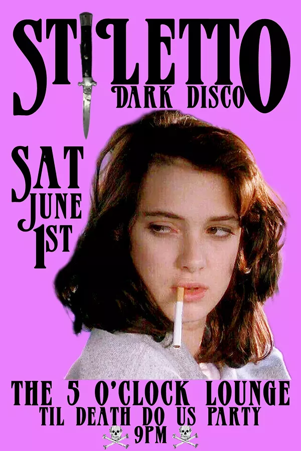 Goth Girls, Lost Boys & All Creatures Of The Nite, DANCE in the DARK as the patron saints of Post-Punk spin thee best NEW WAVE, DarkWave, GOTH & ITALI DISCO dance dirges into & beyond the Witching Hour @ The 5 O'Clock Lounge. Smoke machine starts @ 9.