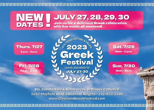 Enjoy all of your favorite Greek food and delicious pastries, along with live Greek music and daily performances by the Hellenic Dancers at the 2023 Greek Food Festival, July 27 – July 30 at Sts. Constantine and Helen Greek Orthodox Cathedral, 3352 Mayfield Road in Cleveland Heights.