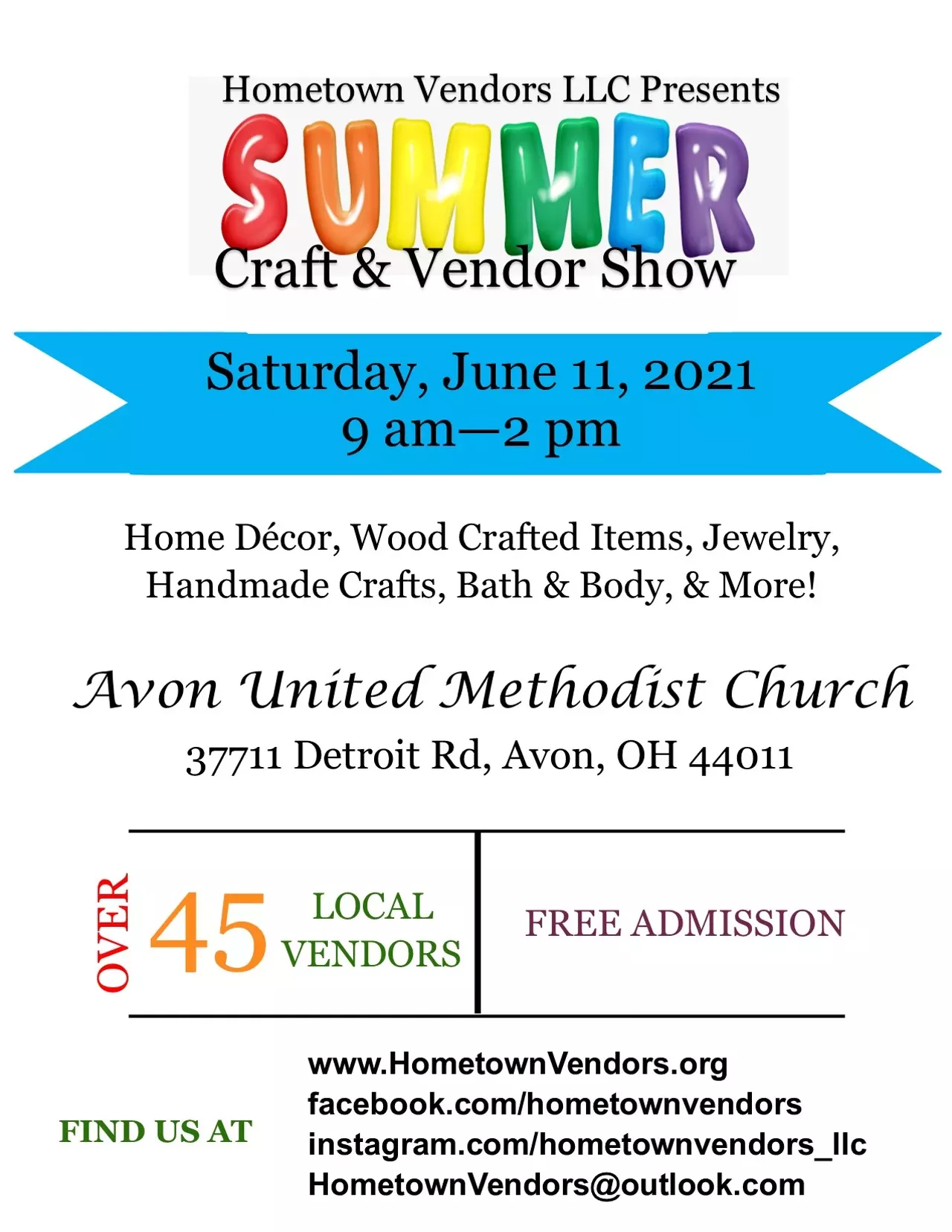 If you are interested in more information, please email us at HometownVendors@outlook.com