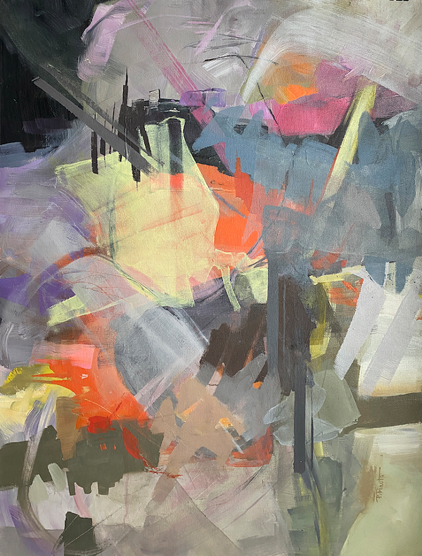 In The Dance of Abstraction, distinguished alum, Patty Flauto, puts forth suggestion, implication and mystery rather than obvious “real” pictures. Provoking thought about paintings that are visible yet incomprehensible has magic unto itself.