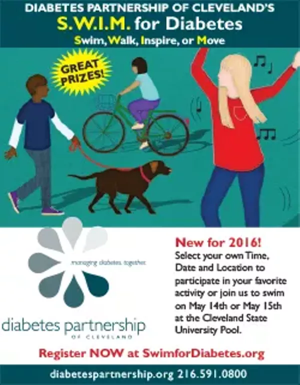 "What is your active?" Is it Cycling, Walking, Running, Dancing, Yoga? Diabetes Partnership of Cleveland is encouraging people of all ages to S.W.I.M. for Diabetes: Swim, Walk, Inspire or Move for Your Health, Diabetes Prevention Education and Camp Ho Mita Koda for children with diabetes! Choose own time, date and location to participate in your favorite activity or join us to swim on May 14th or May 15th at the Cleveland State's Pool. S.W.I.M. for Diabetes is a great way for people to incorporate their favorite activity into helping the community! Donations due May 31st to be eligible for prizes!
