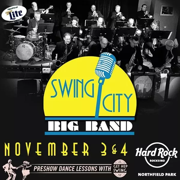 Swing City Big Band has been performing in the greater Cleveland area for 20 years. Our musi-cians are some of the best in Cleveland, and we play a broad range of repertoire. Our core is the Great American Songbook, with original arrange-ments of Frank Sinatra, Ella Fitzgerald, Nat Cole, Duke Ellington, Tommy Dorsey, Motown, Blues, Michael Buble, Harry Connick Jr., Bette Midler, all the way to your favorite Broadway and Pop tunes. This is a 21 & over event.