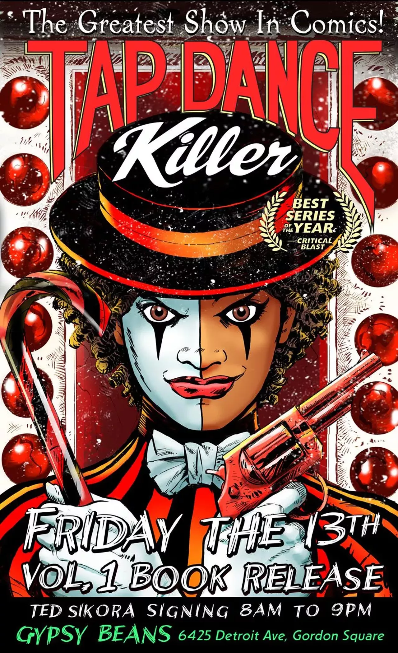 Tap Dance Killer Vol. 1, the latest graphic novel from local author Ted Sikora, has just come out. Set in Cleveland, it centers on a female mobster assassin who blurs the lines between villain and hero. To celebrate its release, Sikora will appear at Gypsy Beans today for a book signing. The book signing continues for the entire day, from 8 a.m. to 9 p.m. During those hours, Sikora will sell copies of the book alongside his other graphic novels and promises that there will be "groovy holiday combo deals," as well. (Niesel)
