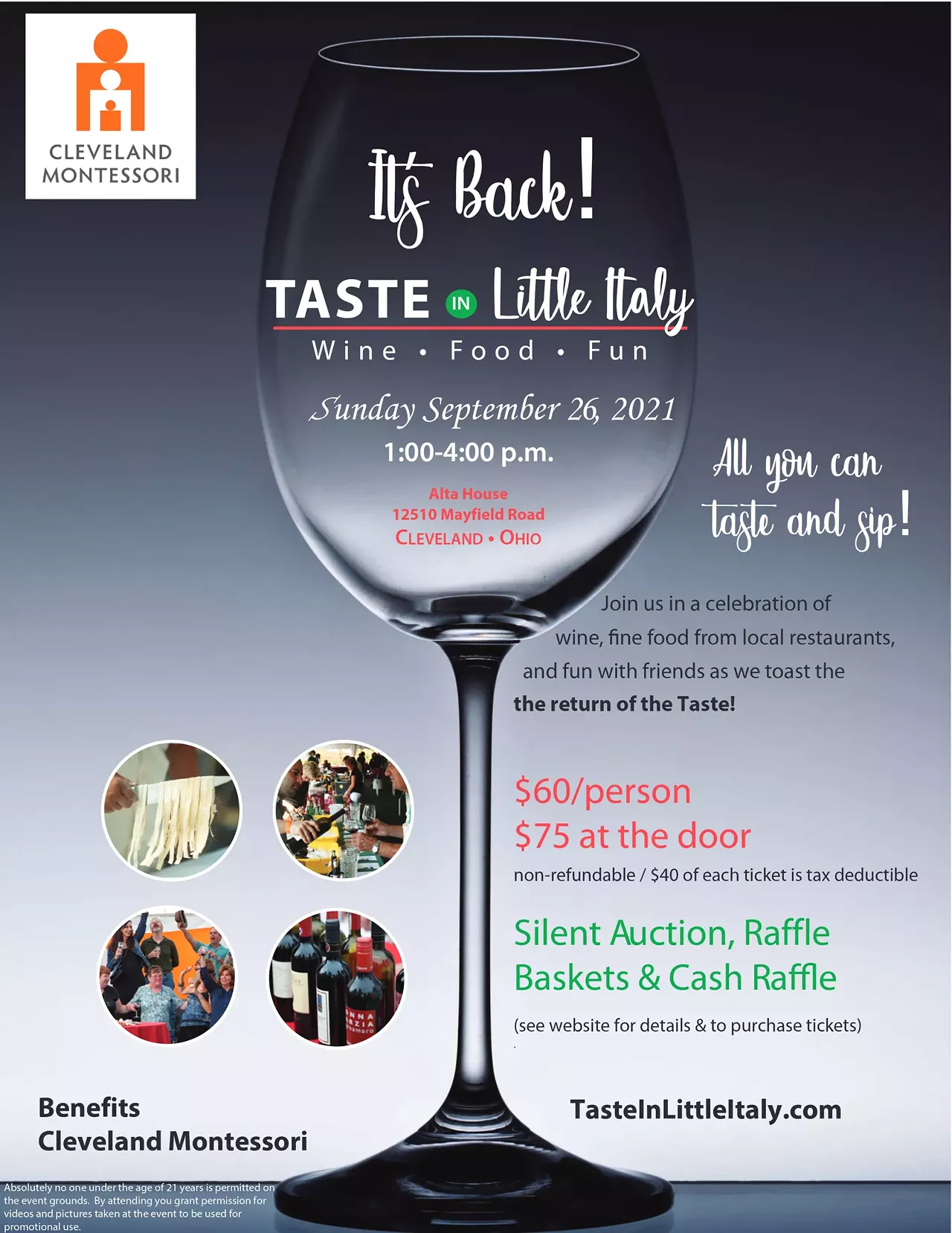 A great benefit for the children of Cleveland Montessori, celebrating over 25 years of Montessori education in Little Italy! Relax and enjoy entertainment, auctions, Raffles, Wine Raffles and more. Bring your friends for an afternoon you’ll remember all year long.