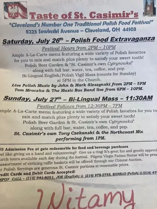 The best in Polish food will be served at the Church. Church Tours will also be available. $5.00 admission fee redeemable for food and drink. Live Polish Music. Enjoy!! Masses will be at 5pm Saturday and 11:30am Sunday.