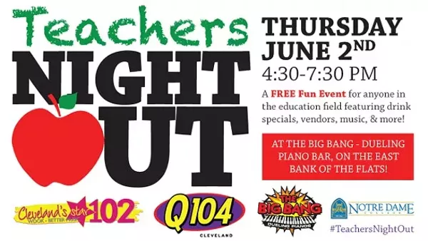 It’s time to celebrate as YOU deserve a break! Join Q104 & Notre Dame College for a special happy hour Thursday, June 2nd from 4:30-7:30pm at BIG BANG PIANO BAR on the East Bank of the Flats! It’s a FREE event full of fun & resources for all teachers or anyone in the education field. There will be drink specials, prizes, vendors, music and more! Call your friends & officially say goodbye to the school year and hello to summer! Rain or shine, indoors & outdoors! Join us for Teachers’ Night