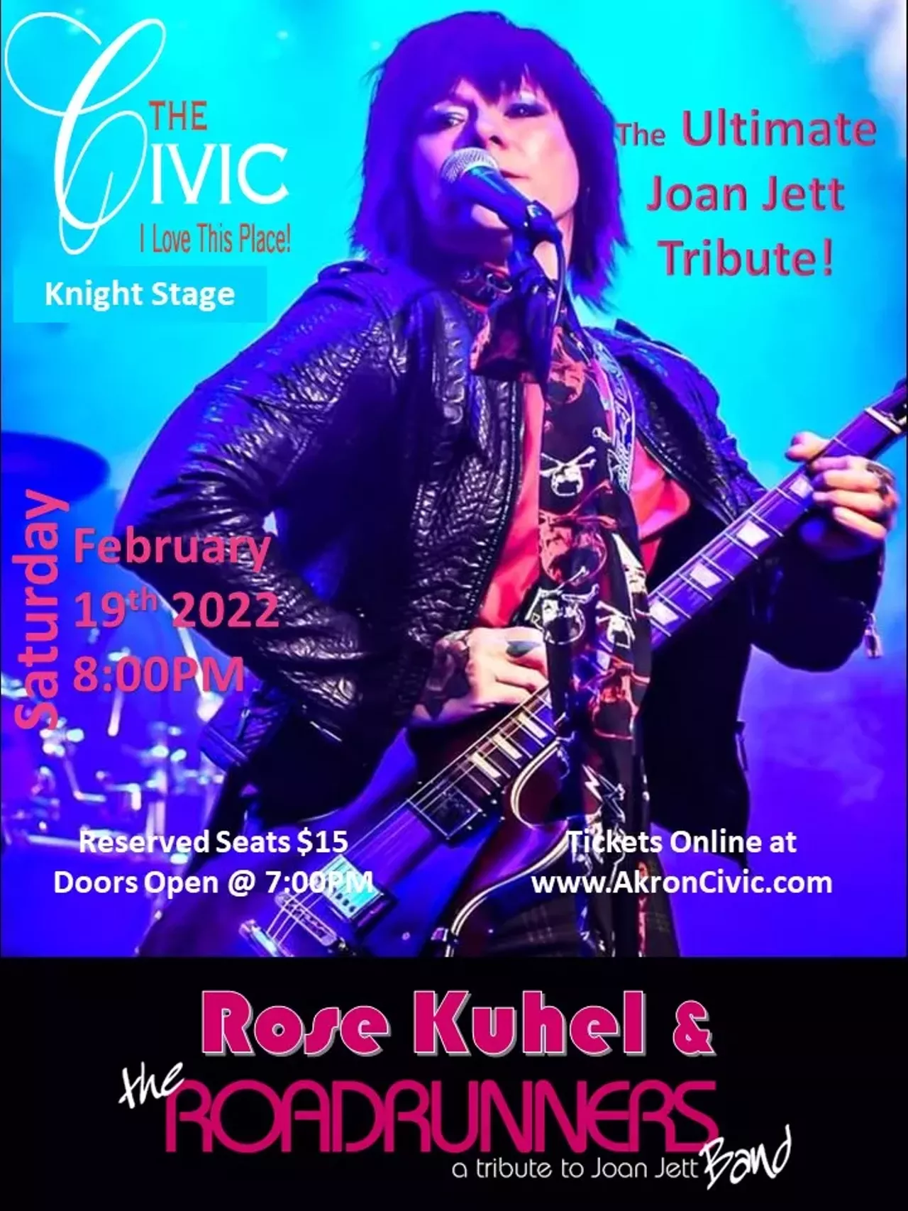 Fronted by Rose Kuhel (ex-Rebel Girl) - The Roadrunners are an Akron based Tribute to the legendary 2015 Rock & Roll Hall of Fame inductee Joan Jett, who is considered the Queen of Rock ‘n’ Roll and the Original Riot Grrrl. Joan Jett & The Blackhearts have had eight platinum and gold albums and nine Top 40 singles, including the classics: "I Love Rock 'n' Roll”, "Bad Reputation”, "I Hate Myself For Loving You”, “Cherry Bomb”, “Light of Day”, and "Crimson and Clover"; all of which are included in The Roadrunners extensive set list.