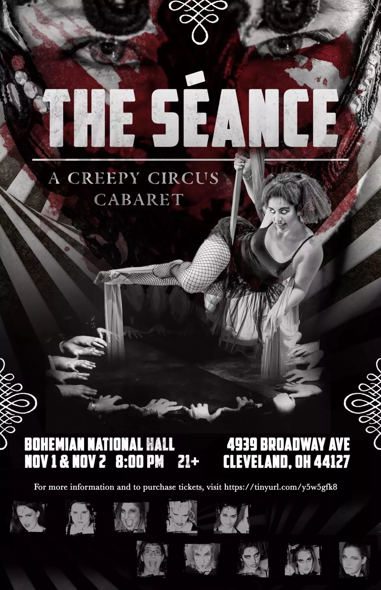 The Creepy Circus Cabaret's performance of the Séance promises to bring aerial performance, rituals, acrobatics and laughs to Bohemian National Hall tonight and tomorrow night. At the event, you'll learn why the ghosts are connected to the historic Slavic Village ballroom. It all begins at 8. For more information, look for Creepy Circus Cabaret on Facebook. Due to the sensitive nature of the subject matter, you must be 21. Tickets cost $22 and can be purchased through the Facebook event page and Eventbrite. For more information and to purchase tickets, please visit https://tinyurl.com/y5w5gfk8.