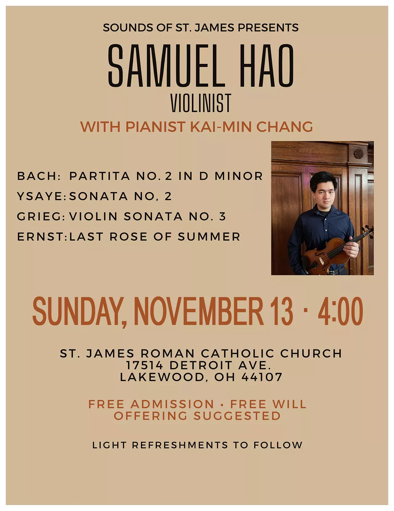 The Sounds of St. James, Samuel Hao, violin with Kai-Min Chang, piano