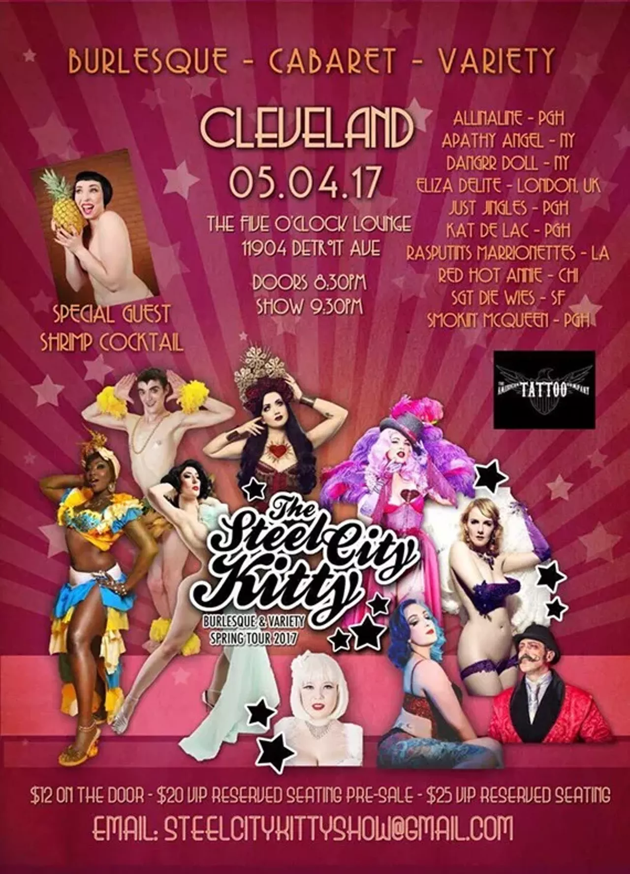 The Steel City Kitty Burlesque and Variety Show is the longest running burlesque and variety show based out of Pittsburgh, PA. Since 2011 the show has featured over 100 national and international traveling performers. We are kicking off 6 years of the show with a 4 week tour across the country!