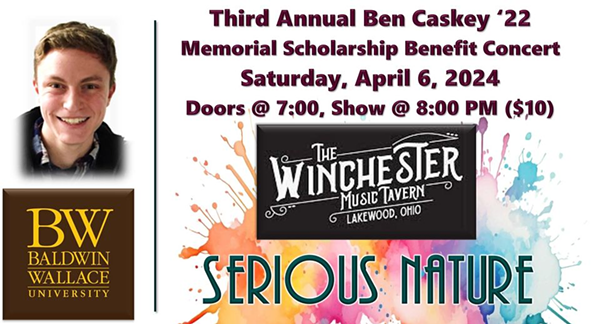 Tim Caskey's son Ben Caskey passed away unexpectedly in 2022 from a congenital heart defect. He was a senior at Baldwin Wallace University, and his family started a scholarship in his name. For the third year in a row, Tim Caskey's band, Serious Nature, will play a special fundraising concert tonight at 8 at the Winchester Music Tavern to raise funds for the scholarship. The group has just released a remastered version of the single "Bombs Away," a track that received airplay on local stations when it first came out in 1989.
