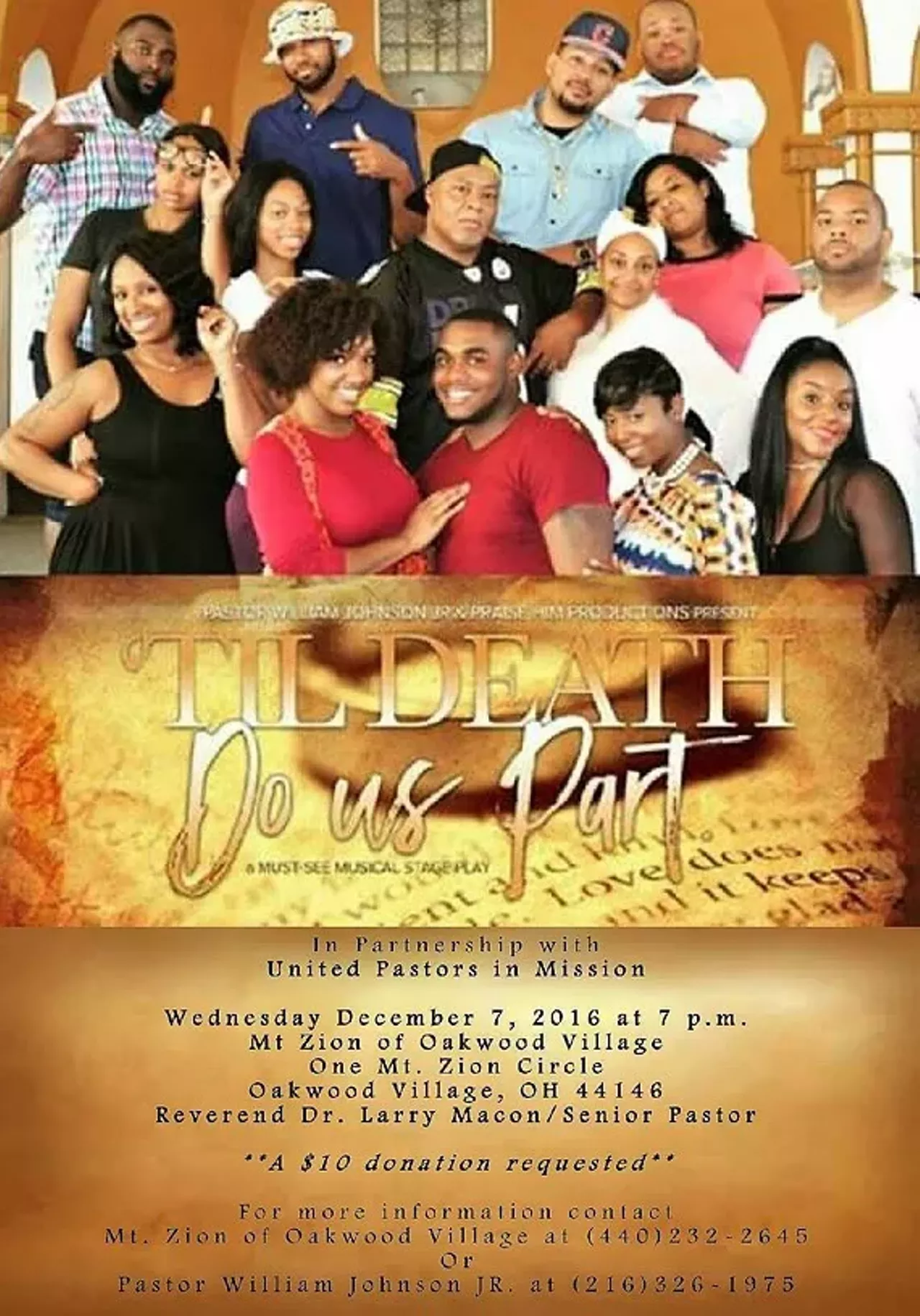 'Til Death Do Us Part will amuse, enlighten and teach couples about the power of forgiveness. This play is dealing with the struggles of marriage, the power of forgiveness, love and restoration in marriage. It is funny, it is powerful, impactful and uplifting and has a lot of elements to it. In the play, the main characters overcome adversity, trials and tribulations that most couples go through in marriage.