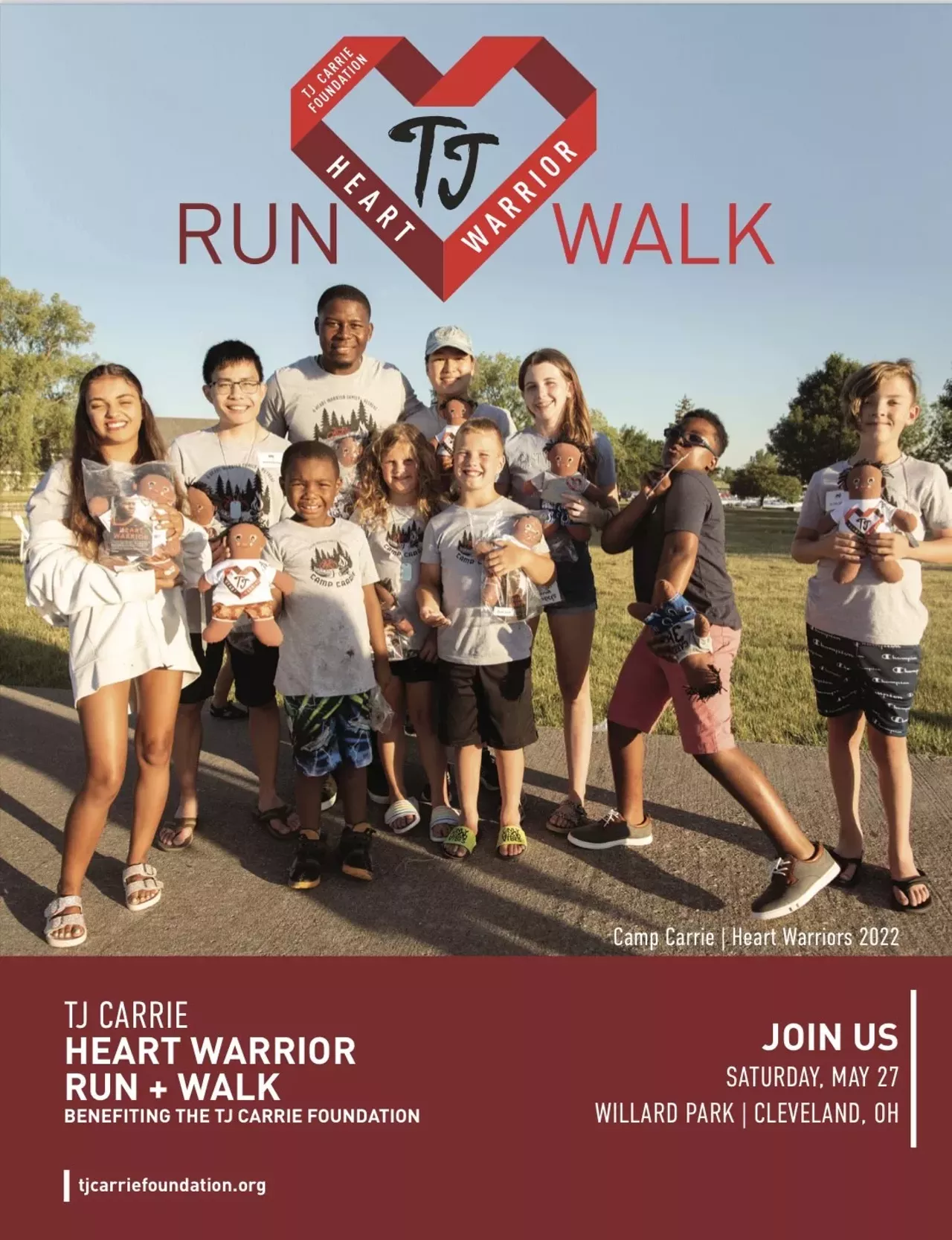 On Saturday, May 27, the inaugural TJ CARRIE HEART WARRIOR RUN + WALK, benefiting theTJ Carrie Foundation, will Huddle Up at the iconic Free Stamp in Willard Park, Cleveland, OH. Pre-Game Warm-ups begin with a Heart Warrior 200 Yard Race for all eligible Heart Warriors and Kids Fun Run. Kickoff is at 9:00 a.m. with staggered starts for the Heart Warrior 5K Run and 1 Mile Walk. All participants will follow the wide receiver and running back routes through historic downtown Cleveland and alongside the shores of Lake Erie. TJ Carrie will cover the routes as he always does.