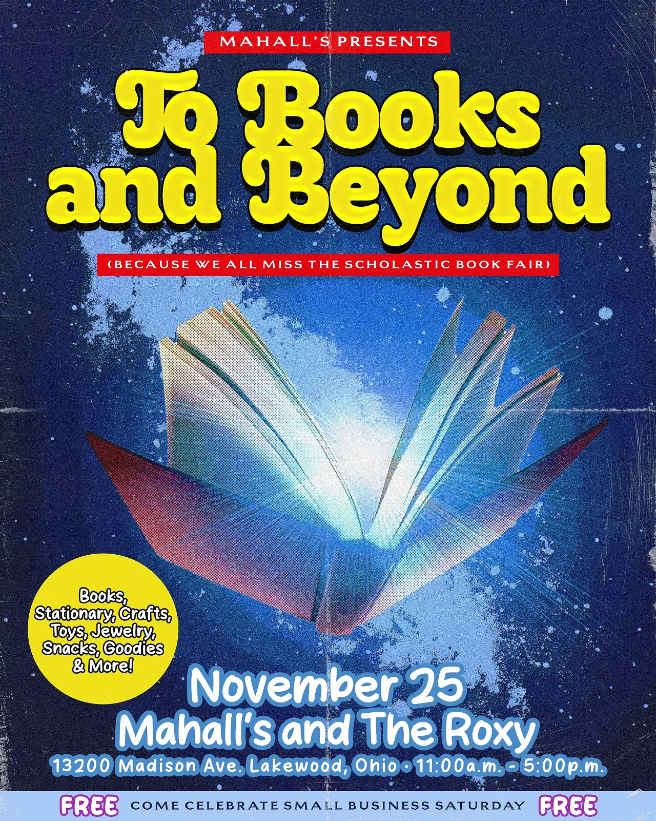 Do you miss the nostalgia of the Scholastic book fair?! Well get ready for To Books And Beyond at Mahall’s - a grown-up book fair extravaganza to celebrate Small Business Saturday! Shop books, baked goods, stationary, art and handmade goods, candles, clothing, and more! Grab a drink or a coffee and check out all the amazing local book stores, artists, and makers while we play hits from the Y2K era and your fav throwbacks! Entry is FREE - come retake your awkward picture day photo and check our first market in the space at The Roxy!
