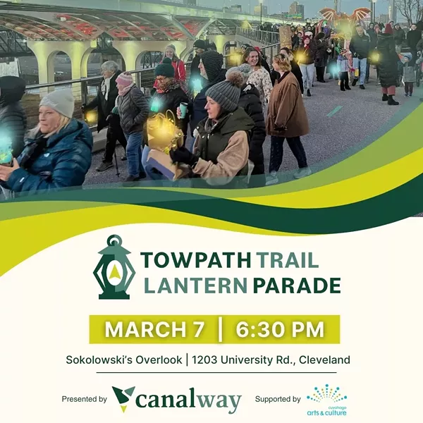 The Towpath Trail Lantern Parade is a celebration of light, creativity and sustainability welcoming spring to Cleveland. This year, 5 commissioned artists will create oversized lanterns from recycled materials to celebrate the history of Ohio and Ohio & Erie Canal. All are welcome to join the parade! Simply make and bring a lantern -sustainability encouraged! The parade is March 7, 6:30 PM at Sokolowski’s Overlook and includes a 1.6 mile walk on the Towpath Trail. Hosted by Canalway, this event is supported through a public grant from Cuyahoga Arts & Culture.