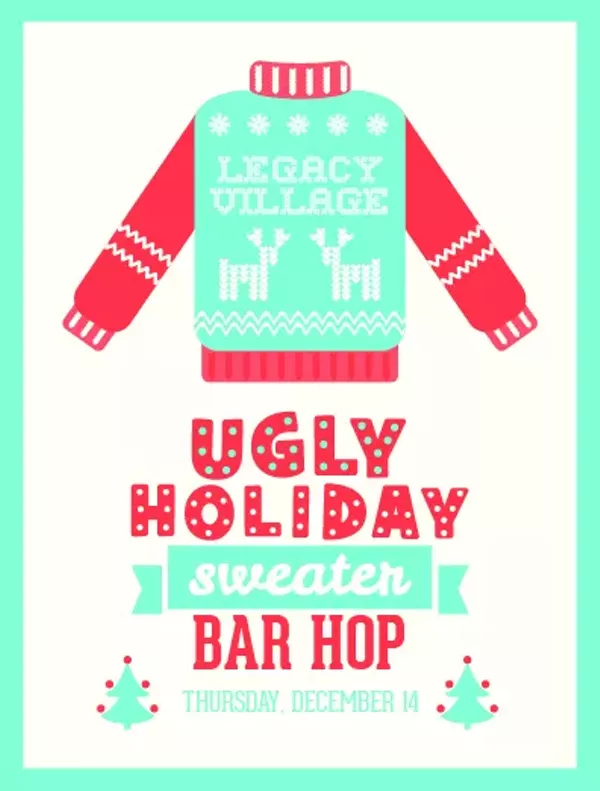 Put on your ugliest holiday sweater and celebrate the season with food and drinks on Dec. 14 from 5 to 9 p.m. For just $10/person, Ugly Holiday Sweater Bar Hop participants will receive a souvenir cup, a festive photo with Santa and the opportunity to enjoy food and drink specials at participating Legacy Village restaurants, including Bar Louie, The Capital Grille, Granite City Food & Brewery and more.