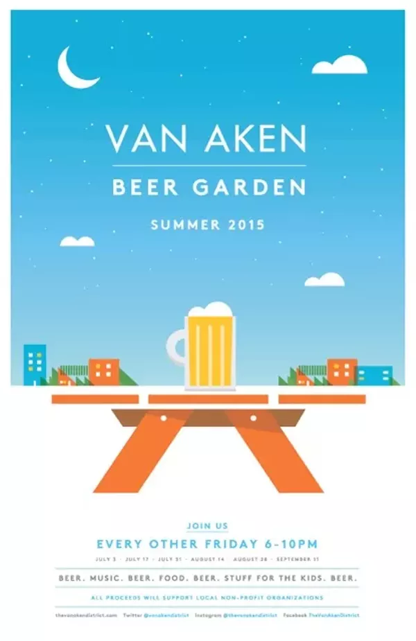 Beginning Friday, July 3 and continuing every other Friday through September 11, the parking lot at Van Aken Center will become a lively beer garden.