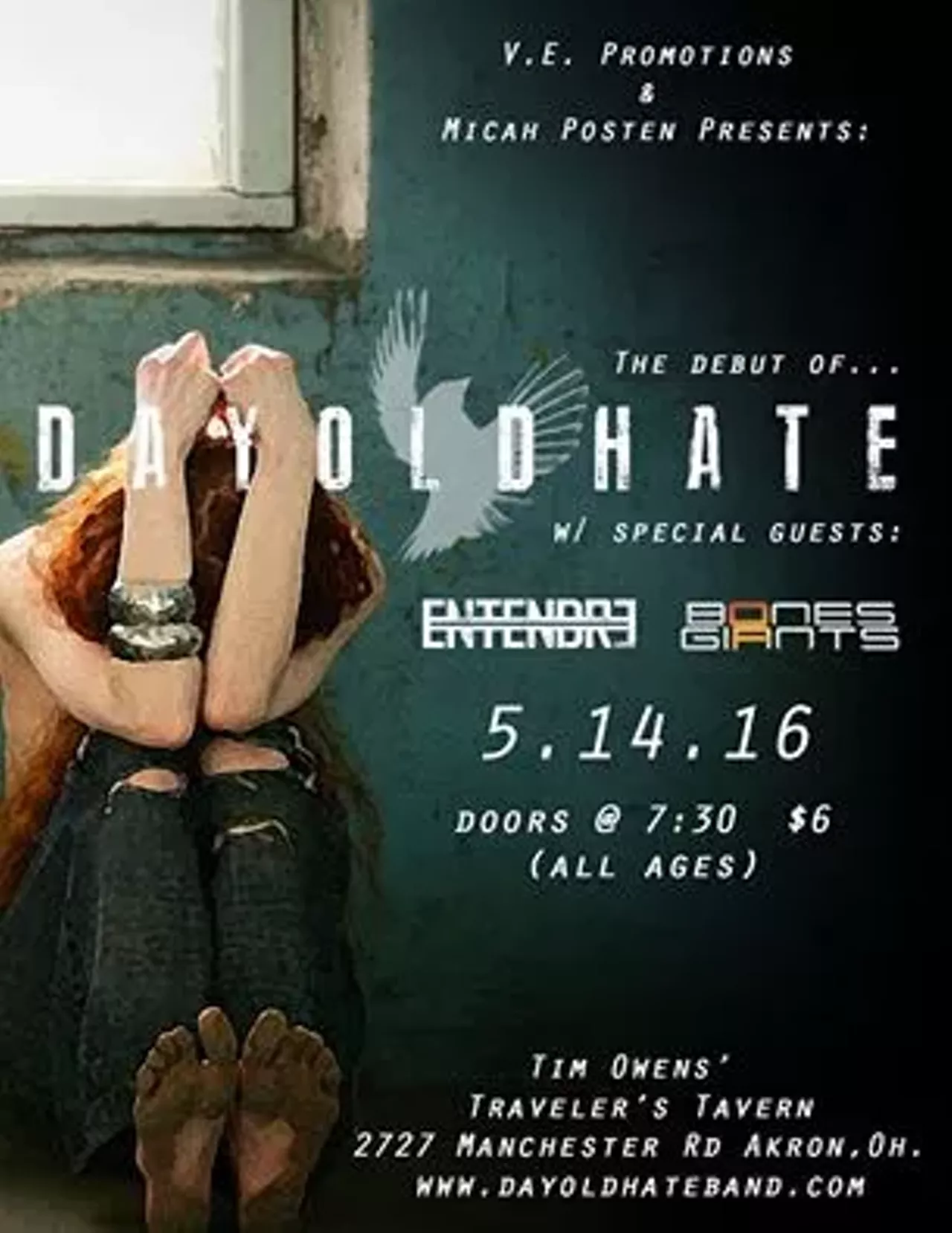 DAYOLDHATE debuts at Tim Owens' Travelers Tavern w/ Bones of Giants and Entendre
