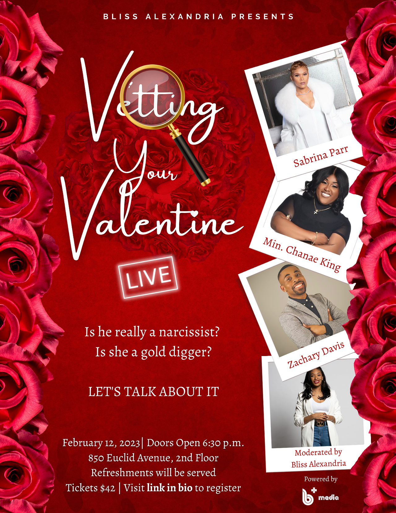 This panel conversation features local celebrities Sabrina Parr, Min. Chanae King and Zachary Davis.