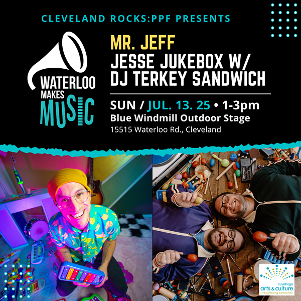 Mr. Jeff = Award Winning, Silly, Fun and Original Children's Music For Kids Created By a Teacher! His high-energy, interactive live shows combine gross motor movement, social-emotional learning, and a healthy dose of silliness, leaving kids ready for a nap—and parents asking for more! Jesse Jukebox (ASCAP) is where Mr. Rogers meets Jack Black. He’s sincere, charismatic, and unconventional! Beloved by children of all ages, Jesse inspires audiences to rock the most outrageous version of themselves while embracing their authenticity & quirky flaws. Free Show presented by Cleveland Rocks:PPF. Supported by CAC.