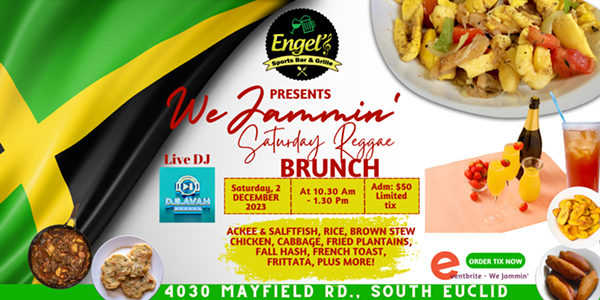 Join us at 'We Jammin' - Reggae Brunch' for an unforgettable sensory journey! On Sat, Dec 02, 2023, at 10:30 AM, head over to 4030 Mayfield Road, South Euclid, OH 44121, where we'll transport you to a groovy haven of reggae rhythms and delectable dishes.