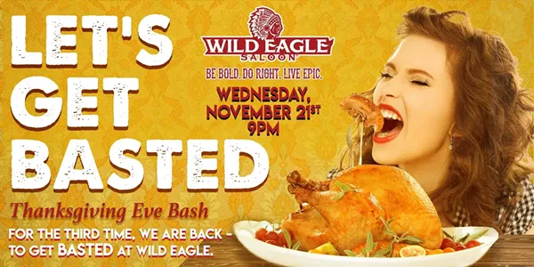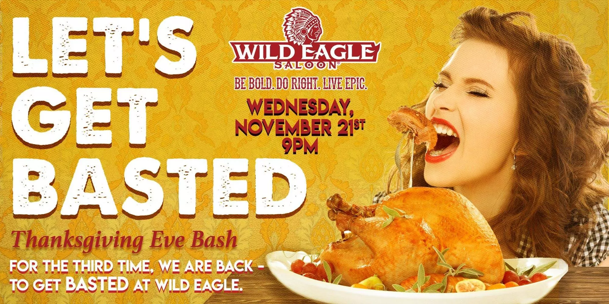For the third time, we are back - to get BASTED at Wild Eagle. Grab the gang your most thankful for and head on over to Wild Eagle, the bar you're most thankful for, and celebrate what we're all most thankful for... a rowdy time at Wild Eagle. The party starts at 9 PM on November 21st.