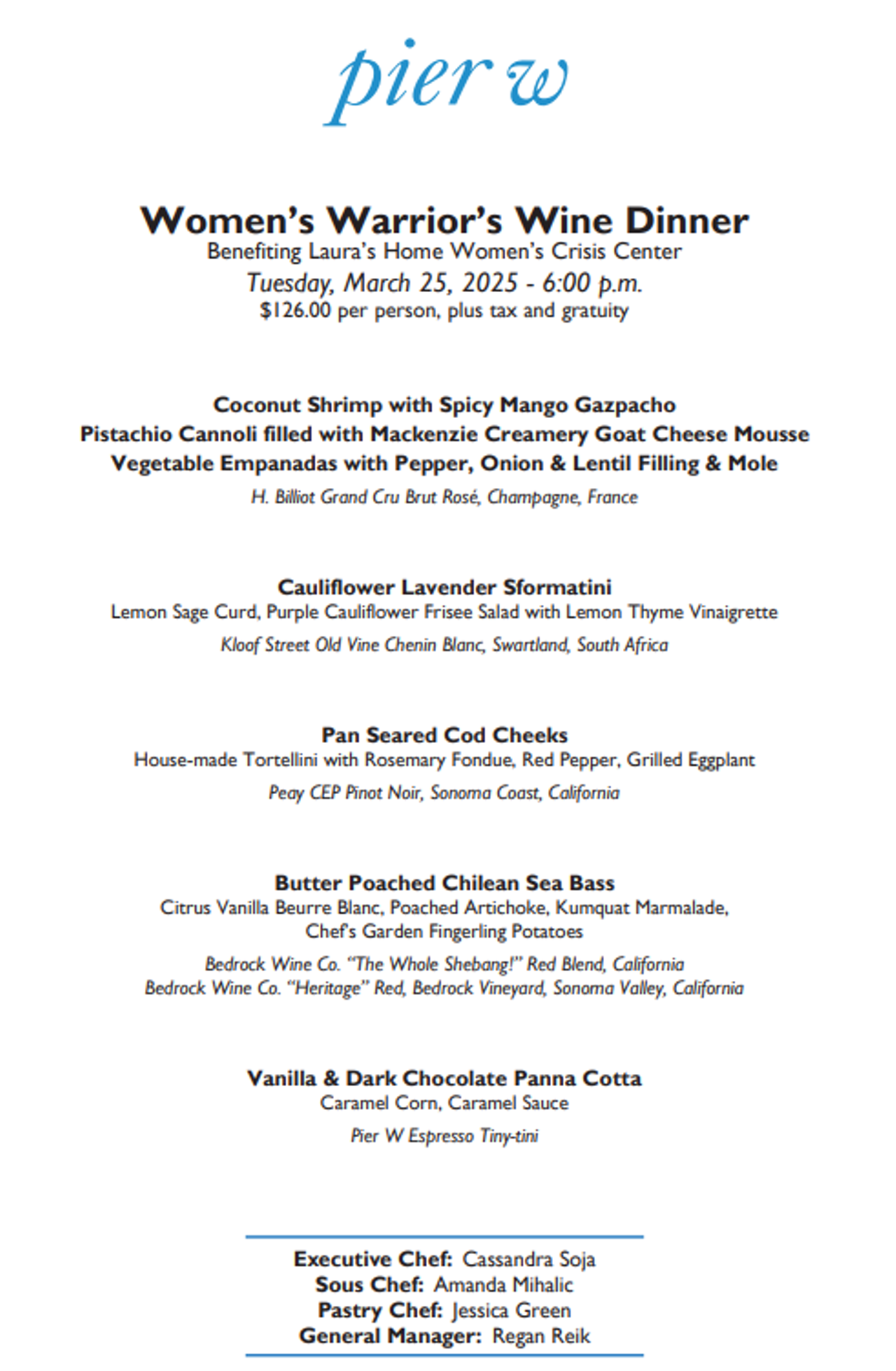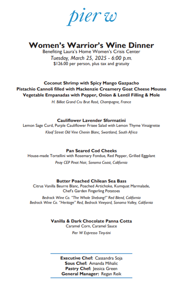 Mark your calendars for our Second Annual Women Warrior Wine Dinner on Tuesday, March 25th. Enjoy a specially curated menu by Executive Chef Cassandra Soja, Sous Chef Amanda Mihalic and Pastry Chef Jessica Green with wine selections showcasing female-fronted wineries around the world.
