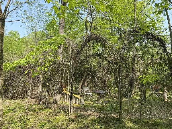 Come explore our outdoor art museum: Woven! ‘Woven’ is an interactive exhibit designed for visitors to walk through, touch, see in, out and through into the surrounding nature! We believe that the connection between art and nature is undeniable and this exhibit will weave that connection and inspire people to appreciate the beauty of Earth’s naturally designed art. Visitors are invited to share in the culture and creativity by creating their own woven art pieces and hanging them inside the larger structure. Each addition transforms the exhibit, making each visit unique all throughout the summer!
