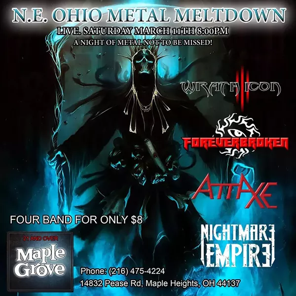 Nightmare Empire is opening for Wrath Icon, ForeverBroken, and AttAxe on March 11th, 2023 at the Maple Grove Tavern in Maple Heights for the NE OHIO METAL MELTDOWN. Tickets are $8.00 at the door. Full bar and food. Bring your friends and come out and have a good time. See you all there!